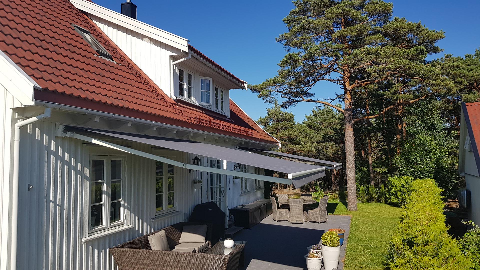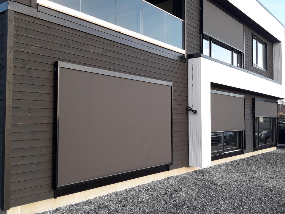Vi leverer mange forskjellige løsninger for utvendig solskjerming. Enten det er markiser til terrassen din, zip screen til dører og vinduer.